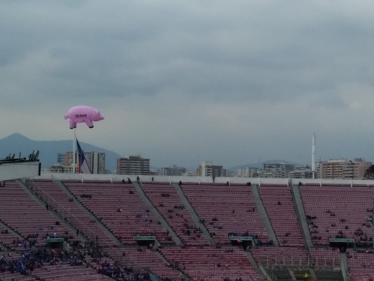 Desde este fin de semana, el rosado y característico cerdo inflable de la banda se encuentra elevado a un costado de las independencias del Estadio Nacional. ¿La razón? La campaña de promoción de la gira que solo cuenta con entradas al sector VIP PLATINUM ($253.000) disponibles a través del sistema Puntoticket.