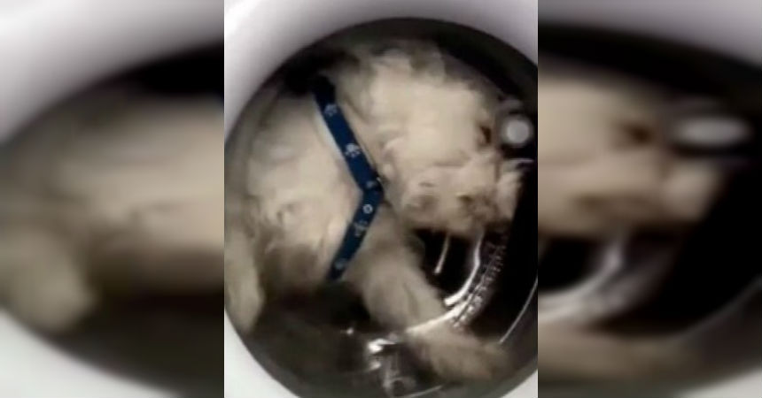 Es que la chica tuvo la pésima idea de meter a su pequeño perro en la lavadora, y junto al video, además compartió una encuesta en la que preguntaba "¿va a tener traumas de grande?".