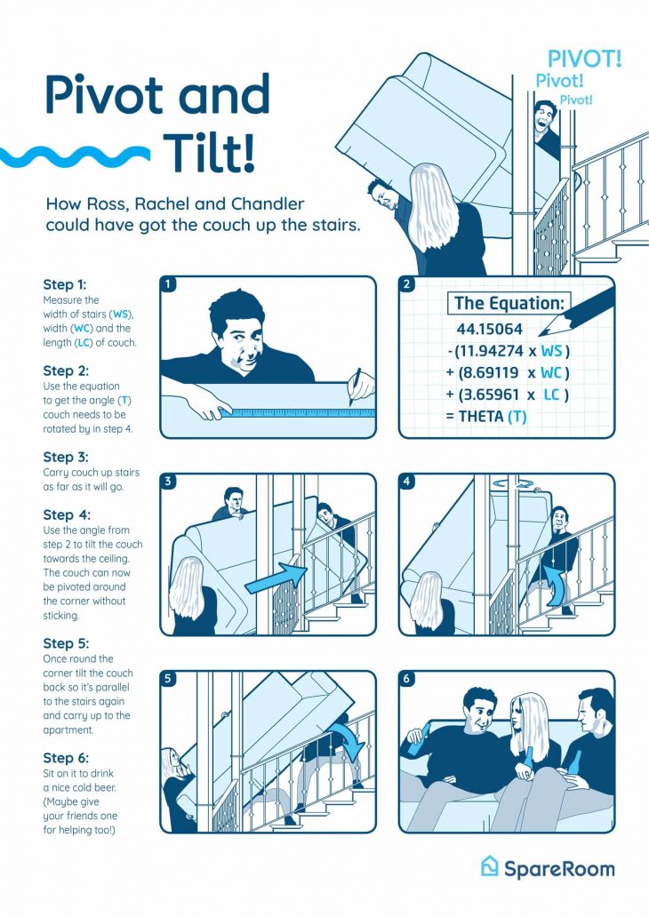 Caroline Zunckel, amante de la serie y doctora en astrofísica; decidió desarrollar para el blog Spare Room cálculos basados en el teorema de Pitágoras. Todo para saber si el sillónm realmente entraba o no, y la conclusión fue que sí cabía por las escaleras.