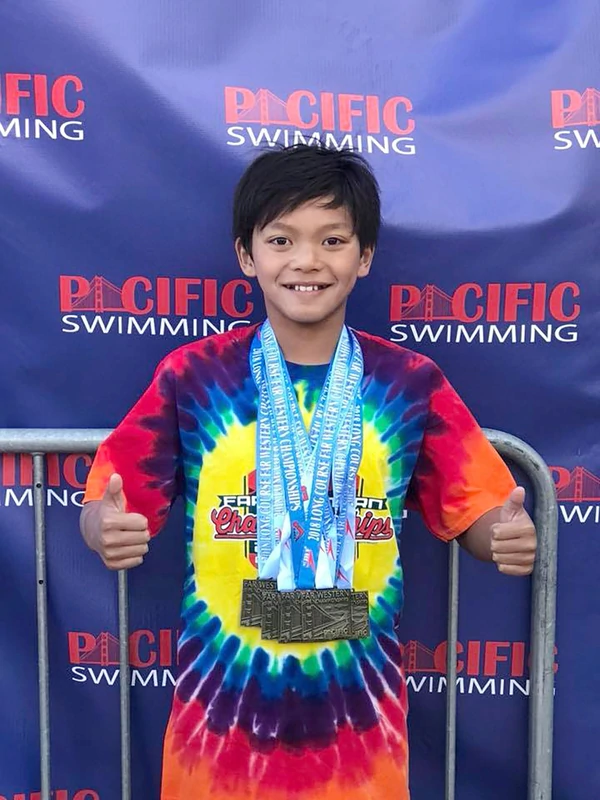 El niño dijo "Me encanta nadar porque tengo mucha gente que me apoya. Mis entrenadores y mis padres siempre están ahí para mí".