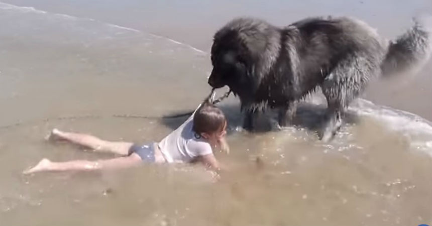 Cuando una pequeña ola impactó sobre ella, el perro la agarró de la camiseta suavemente con los dientes y la arrastró hacia la arena, hasta que estuviera fuera de peligro, recoge Daily Mail.