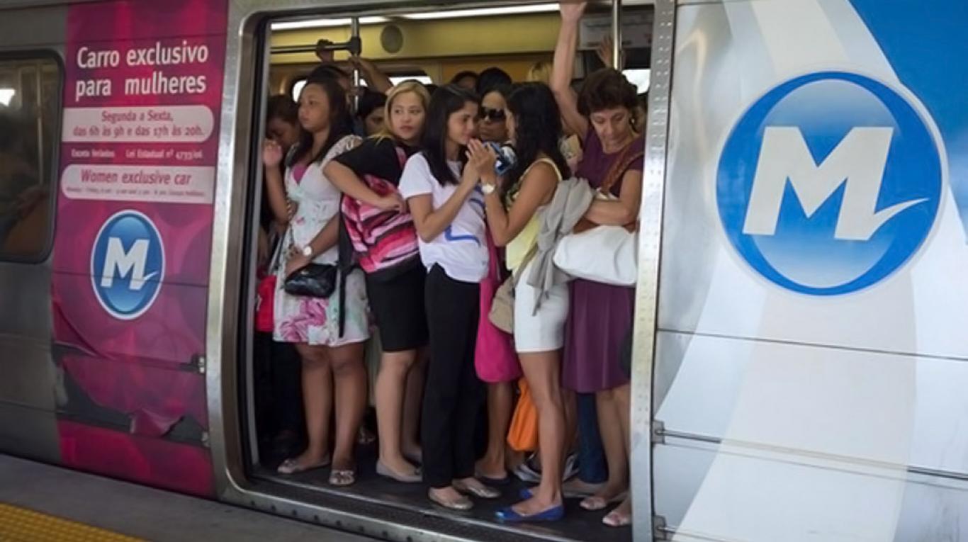 En Brasil, la medida se implementó en Río de Janeiro el 2006, donde de los seis vagones, hay uno señalizado especialmente para mujeres en horario punta.