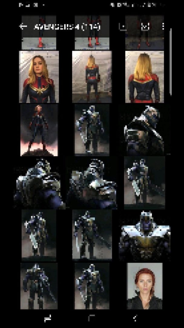 Ahí podemos ver por ejemplos a Chris Evans con un nuevo traje del Capitán América, también aparecen la Capitana Marvel, Viuda Negra, Thor, Máquina de Guerra, y de manera menos nítida a Iron Man, Thanos y a Ojo de Halcón como Ronin.