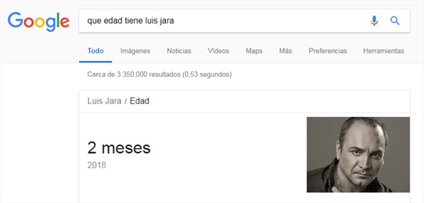 Esto, porque al buscar la edad del intérprete de "Golpe de Suerte" en la barra de Google aparece una divertida respuesta: Luis Jara tiene dos meses de edad.
