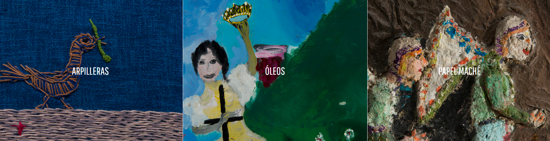 Entre los tejidos bordados y pintados más icónicos de la artista están "La Cueca", "Contra la Guerra" y su afiche con el famoso ojo bordado que sirvió como llamado gráfico a su exposición de arpilleras, pinturas y esculturas en el Musée des Arts Décoratifs del Louvre, entre el 8 de abril y el 11 de mayo de 1964.