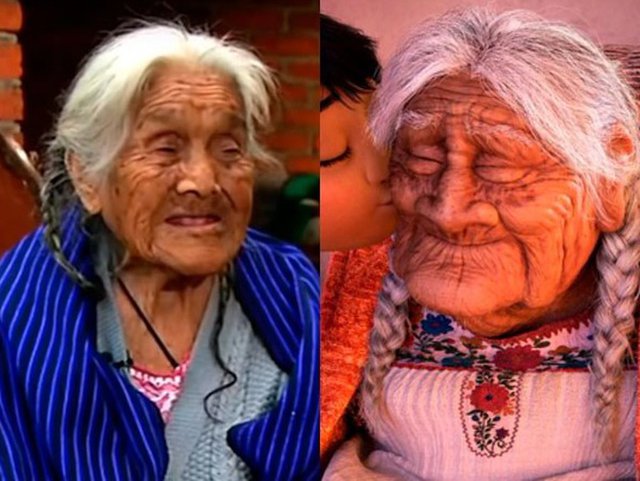 No sólo tienen un cabello de tono similar, sino que también las arrugas de su rostro son casi idénticas a las de Mamá Coco. También sus pecas y la forma de cara.