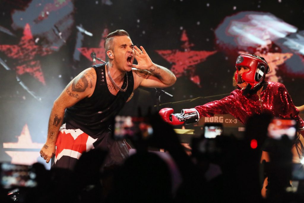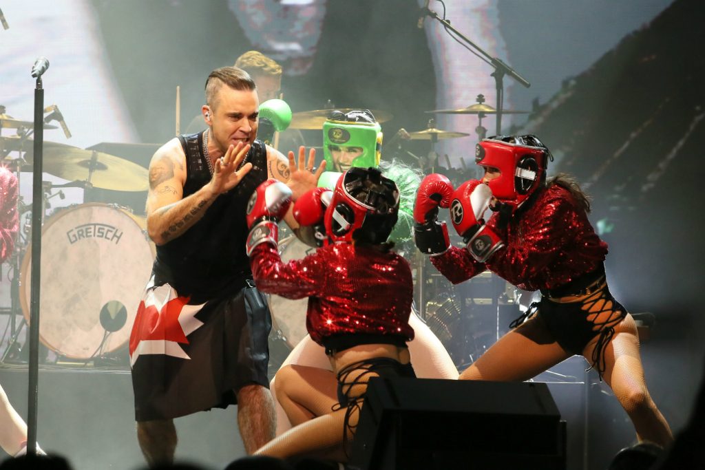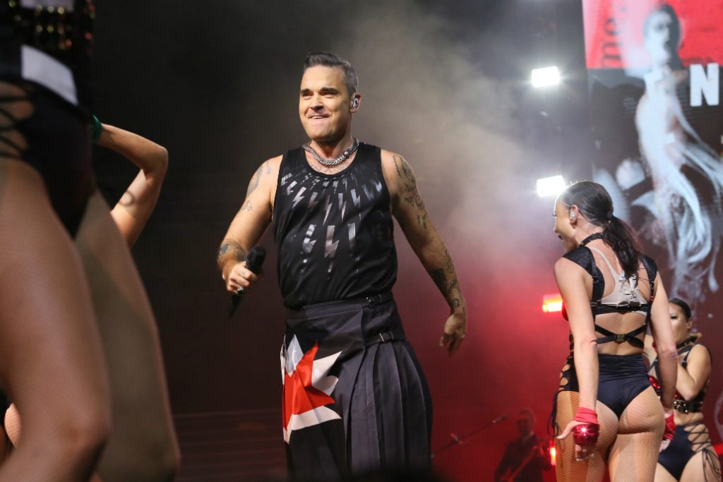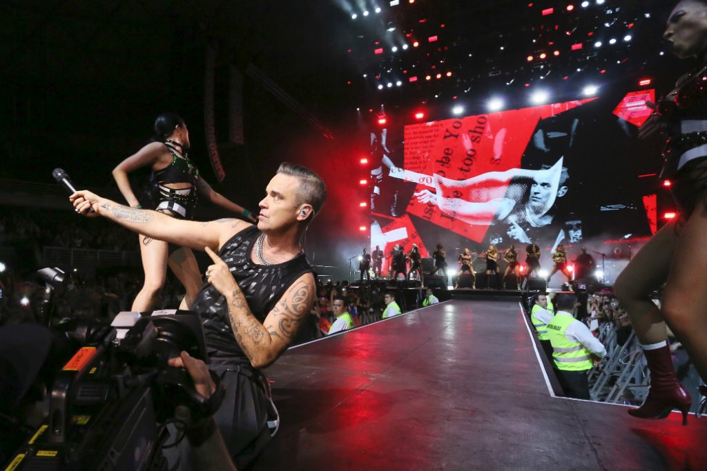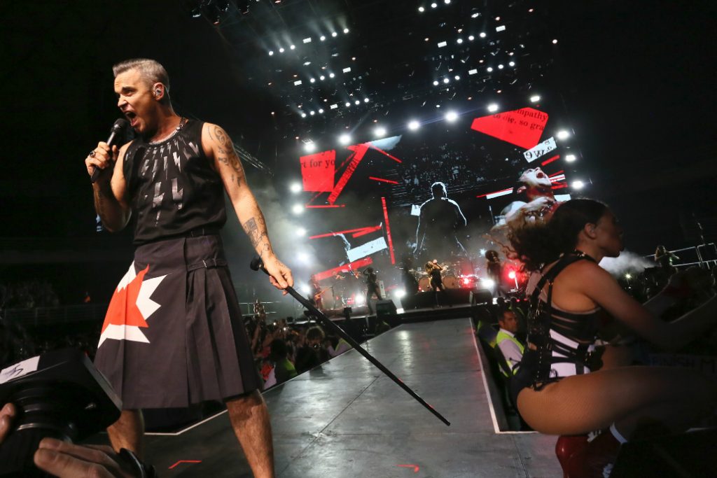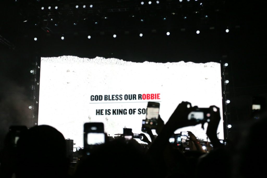 Después de tocar el himno de Inglaterra, y de entrar al escenario con la canción que da nombre a su último trabajo de estudio ("The Heavy Entertainment Show", 2016), Robbie Williams entregó un concierto para el recuerdo.