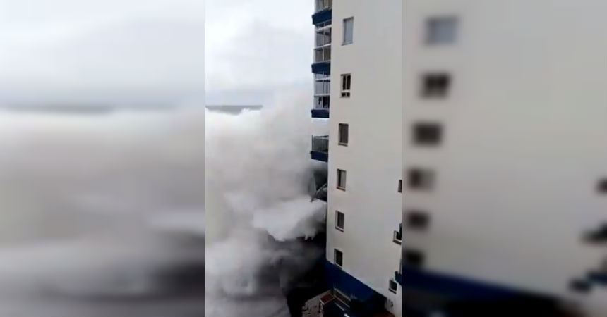 En las imágenes se puede ver la fuerza de las olas, y cómo destruye un edificio que está en el borde costero.