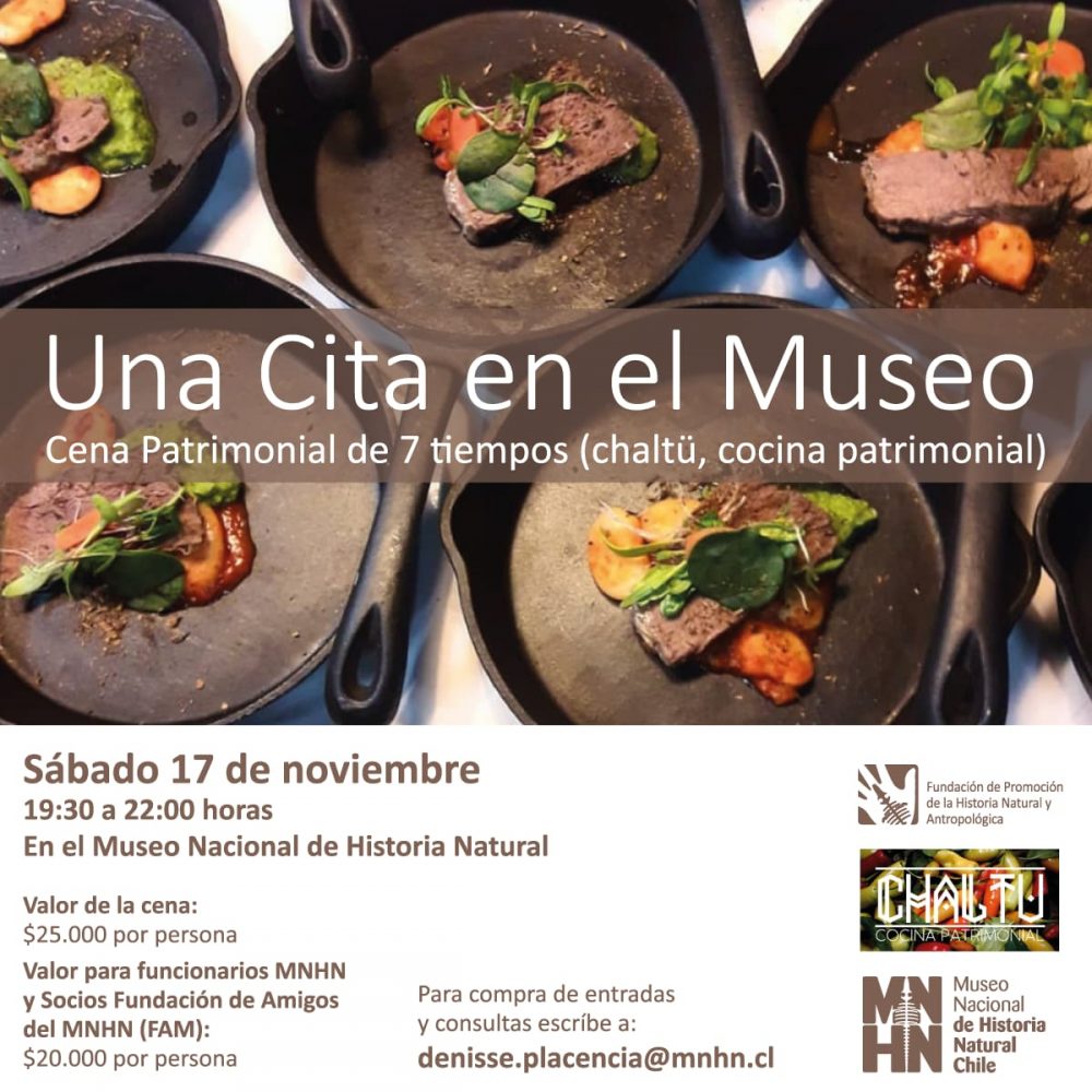 La cita es el sábado 17 de noviembre a las 19:30 horas en el recinto del Parque Quinta Normal, donde te estará esperando una cena de 7 tiempos, con la que se rescatarán los sabores de la cocina tradicional mapuche y que va a estar a cargo del chef José Calfucura.