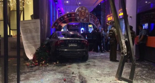 Alrededor de las 4 de la madrugada los dos involucrados tuvieron una discusión con una cajera y un guardia del casino. Tras amenazar a los empleados se retiraron del lugar. Sin embargo, al rato volvieron de forma descontrolada arriba de un vehículo el que utilizaron para destrozar la puerta principal.