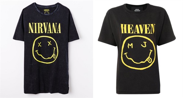 Según informó TMZ, el diseño no sólo incluye la cara, donde los ojos tachados son reemplazados por una "M" y una "J" -iniciales de la marca-, sino que también usaron la fuente Onyx que fue utilizada para escribir "HEAVEN", en vez de Nirvana.