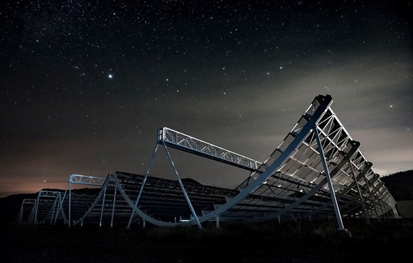 El observatorio CHIME se encuentra fuera de Penticton y consiste en cuatro antenas semicilíndricas de 100 metros de largo. La instalación opera 24 horas al día y explora todo el cielo del norte.