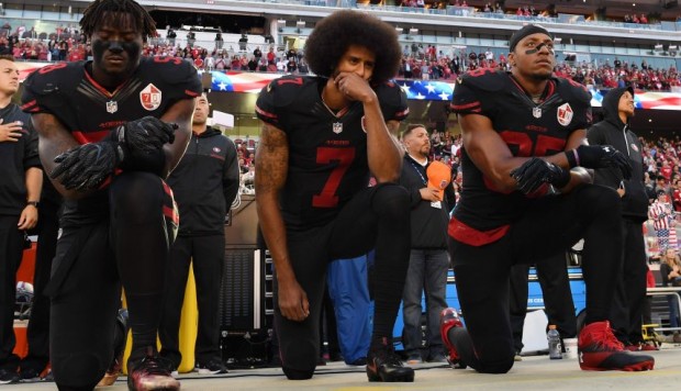 En el año 2016, Colin Kaepernick destacó dentro de la liga de fúbol americano, NFL, por ser el quaterback de los 49ers. Esto por hacer que su equipo llegara al Super Bowl de 2017 y por algo más. Cada vez que sonaba el himno estadounidense, Kaepernick se arrodillaba en señal de protesta por la violencia racial y por Donald Trump. Una vez finalizado el campeonato, no jugó más, fue vetado de todos los equipos de la NFL.