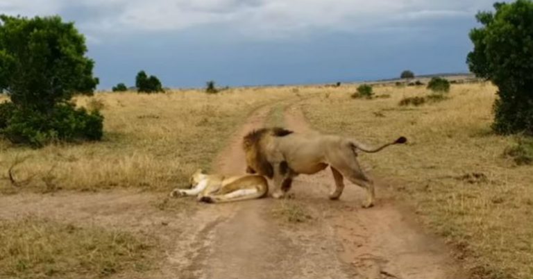 En las imágenes, se observa como el león se acerca sigilosamente a la hembra, pero cuando ya se encuentra a su lado decide morder el lomo con maldad.