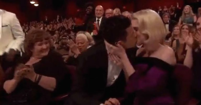 El beso de Rami Malek a Lucy Boynton al ganar el Oscar por interpretar a Freddie Mercury en #BohemianRhapsody #Oscars2019 #Oscars pic.twitter.com/e38YcPgn1S