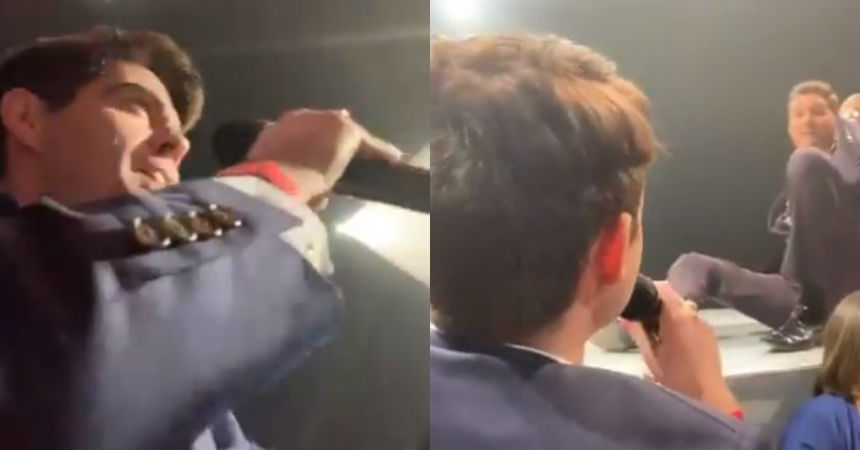 Como es habitual, el cantante ofreció el micrófono a una persona del público, justo cuando iba a interpretar el popular tema "Fly me to the moon". El elegido fue Andrew Zarrillo, quien al tomar el micrófono dejó al descubierto su impresionante talento para el canto.