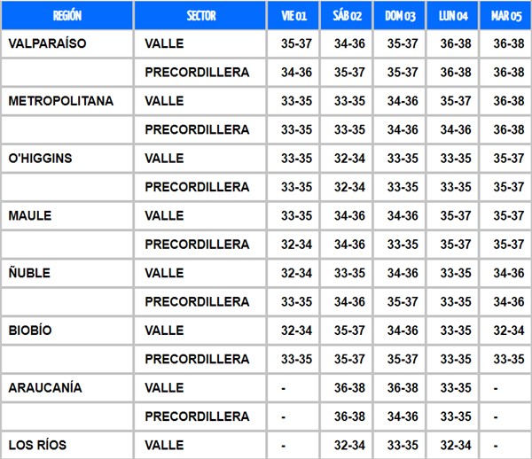 A casi una semana de la histórica jornada de calor en la Región Metropolitana, durante la cual se registraron temperaturas que sobrepasaron los 40°, la Dirección Meteorológica anunció que hasta el lunes se esperarán nuevamente temperaturas extremas entre las regiones de Valparaíso y Aysén.