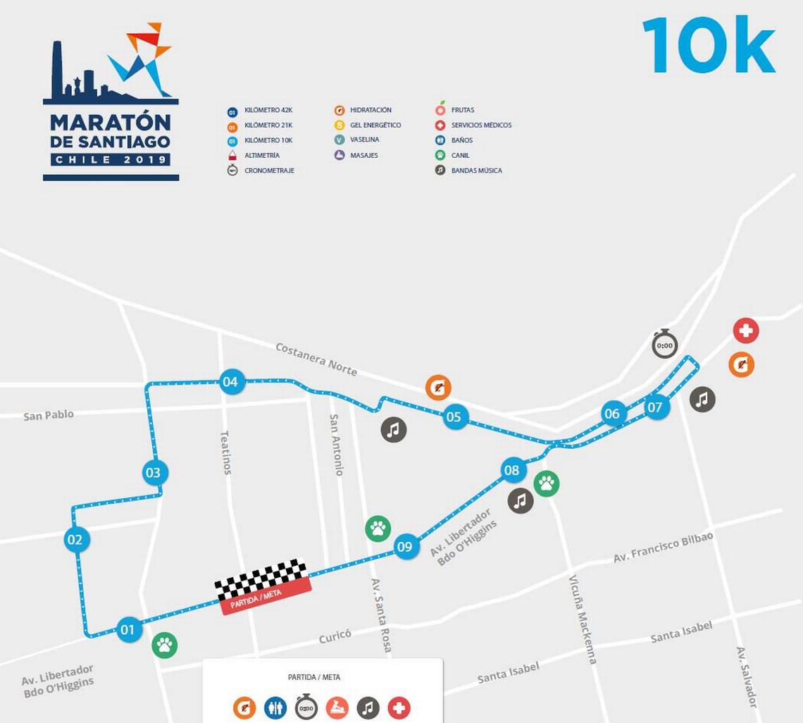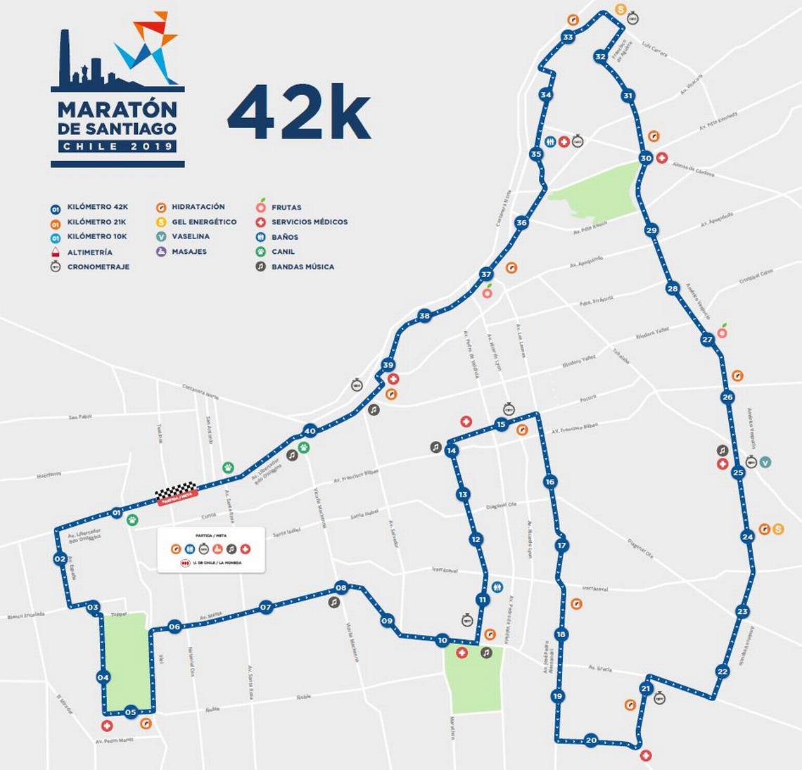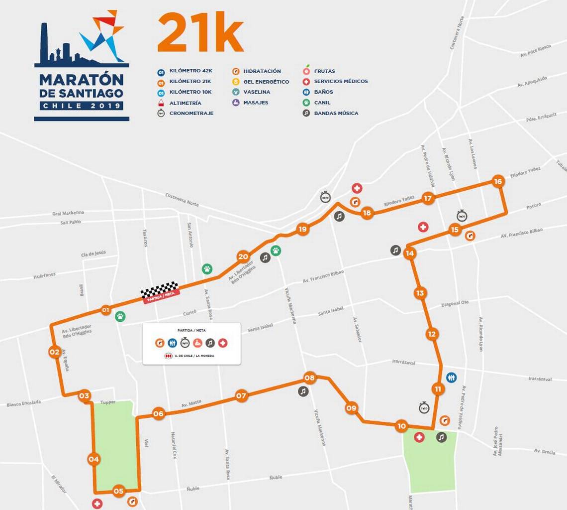En el caso de la competencia de 42 kilómetros, comienza en la intersección de Teatinos con Alameda, para pasar luego por otras avenidas como España, Matta, José Pedro Alessandri y un gran tramo de Américo Vespucio.