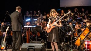 Música para Volar comenzó hace tres años a mezclar las canciones rockeras y electrónicas de Gustavo Cerati con arreglos clásicos orquestales. A la música le suma una serie de proyecciones audiovisuales.
