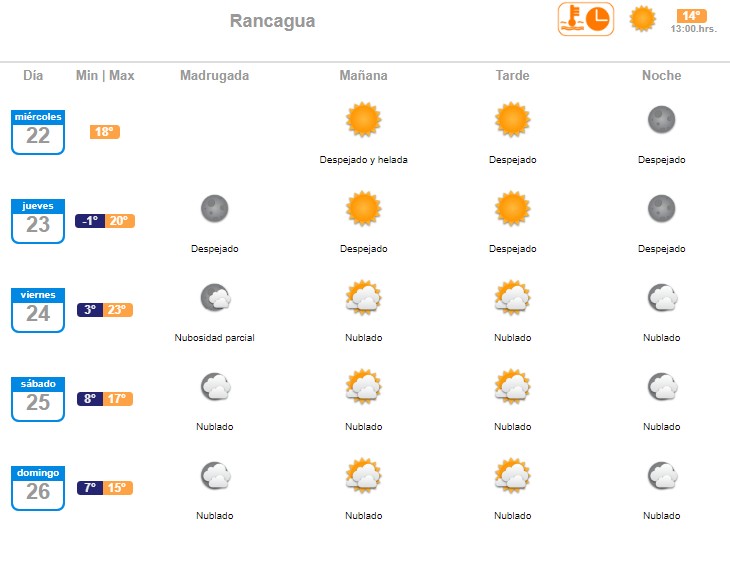 Lo anterior también ocurriría en Rancagua, en la sexta región, Talca y Chillán. Aquí dejamos el pronóstico para todas aquellas ciudades.