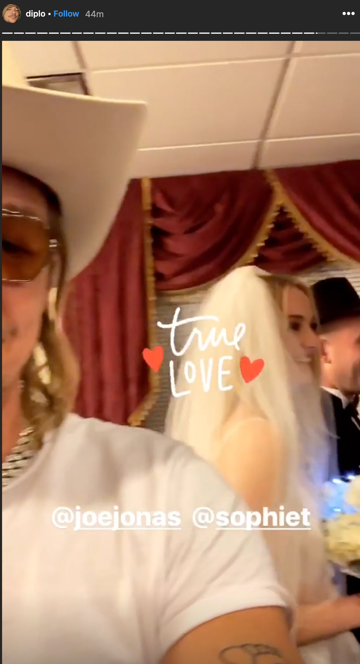 También estuvo el dj Diplo, que publicó varios stories de la ceremonia y la fiesta en su cuenta de Instagram. En los vídeos se puede ver a Turner, de blanco y con velo, y a Jonas, con traje gris y clavel blanco en la solapa.