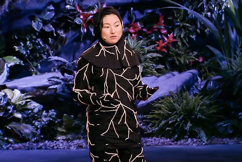 Jae Rhim Lee se puso una versión anterior del traje en una charla TED en 2011, en la cual explicó la investigación detrás de este invento.