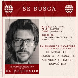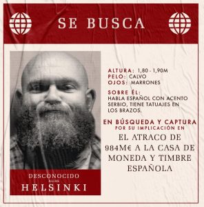 "En búsqueda y captura por su implicación en el atraco de 984 millones de Euros a La Casa de la Moneda y Timbre española", señala la publicación que acompaña la fotografía.