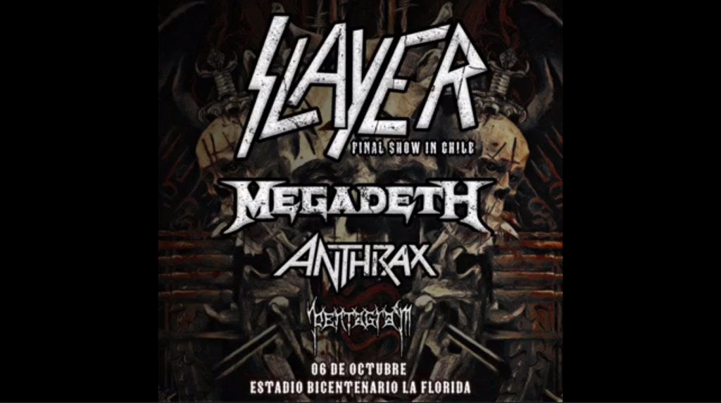 Reconocidos como uno de los actos en vivo más pesados del mundo, el grupo que firmó los indispensables “Reign in Blood” y “South of Heaven”, dejará las grandes giras mundiales tras casi cuatro décadas de trabajo ininterrumpido. Esta extensa aventura trajo a Slayer a Chile en siete ocasiones, 6 en Santiago y una en su natal Viña del Mar.