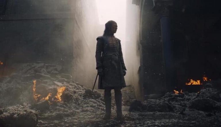Mientras esto ocurría, la pequeña Arya Stark caminaba por las calles junto a "El Perro", quien la hizo desistir de su venganza en contra de Cersei. Fue así que trató de buscar un refugio y mientras todo se caía a pedazos, observó los cuerpos sin vida de una madre y su hija, quienes la salvaron de ser pisoteada por las personas que arrancaban de las llamas.