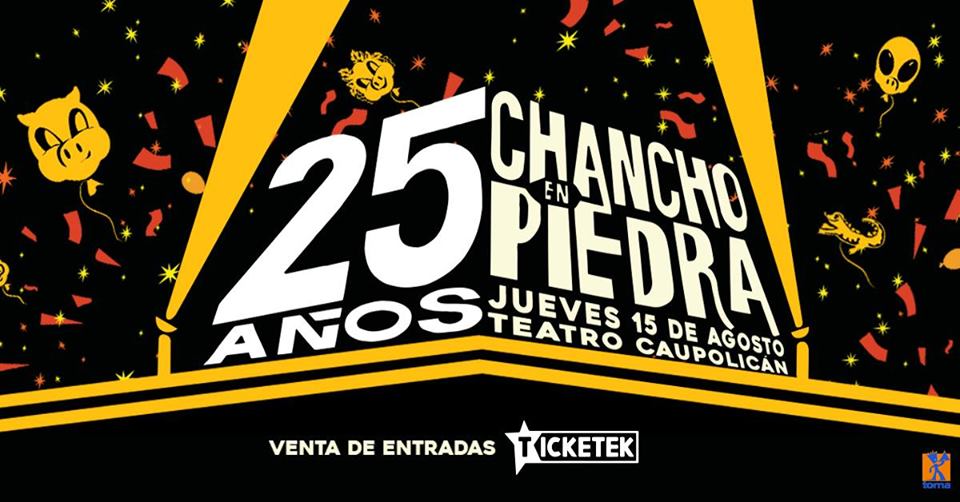Las entradas para show 25 años de Chancho en Piedra están disponibles en Ticketek.cl (con cargo por servicio) y en Tienda Tifossi Portal Lyon, local 29 (sin cargo por servicio).