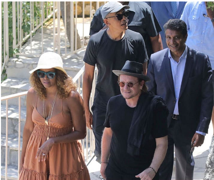 Es ese vínculo el que ahora los hace disfrutar de unas vacaciones juntos en Francia. En algunas de las imágenes, se puede apreciar a Michelle y Barack en el pueblo medieval de Ezé. Junto a ellos, se aprecia al vocalista de la banda, Bono y a su guitarrista, "The Edge".