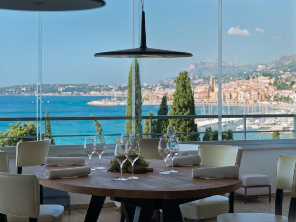 El lugar tiene un paisaje maravilloso ya que queda a los pies de las montañas, a dos pasos de Italia y del puesto fronterizo, con una vista privilegiada del mar Mediterráneo. El lugar está construido en tres niveles, la sala del restaurant, espaciosa, elegante y luminosa, con una vista mágica sobre la bahía del pueblo de Mentón.