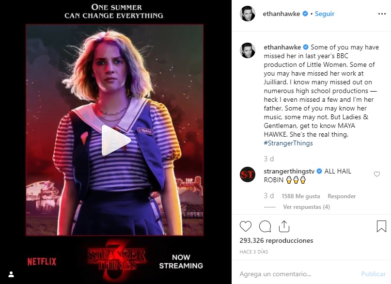 El actor Ethan Hawke, el papá de Maya, compartió una imagen promocional de su personaje en Stranger Things y le dedicó un emotivo mensaje.