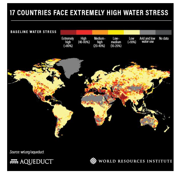 De acuerdo al Instituto de Recursos Mundiales , las variables como la agricultura, las industrias y la administración municipal son las responsables de la situación crítica de los países que poseen un nivel “extremadamente alto” de estrés hídrico, ya que extraen más del 80% de los recursos.