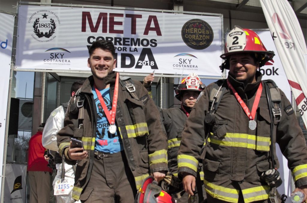 Este año 1.400 Bomberos, nacionales y extranjeros aceptaron el desafío de subir el edificio más alto de Latinoamérica: la Torre Costanera Center —con sus equipos de protección personal habituales— para llegar al Sky Costanera, a 250 metros de altura.