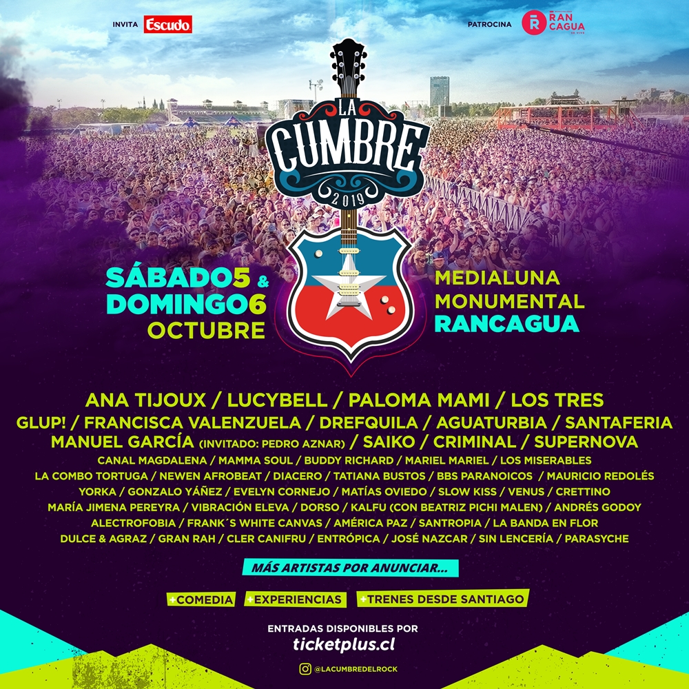 Recordemos que La Cumbre 2019 se celebra por primera vez en Rancagua los días 5 y 6 de octubre, que ya cuenta con la cartelera de artistas confirmados.
