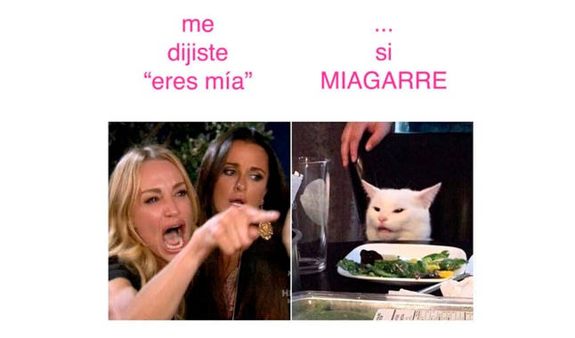 “Me dijiste que era el amor de tu vida”, alega ella. El gato responde: “Tengo siete”. O “Dijiste que dejarías a la otra", dice ella, "pero en su casa” responde @smudge_lord, que cuenta con más de 440 mil, forman parte de los collages que mezclan la foto de Taylor Armstrong en una escena del reality ‘The Real Housewives of Beverly Hills’ con las del gato.