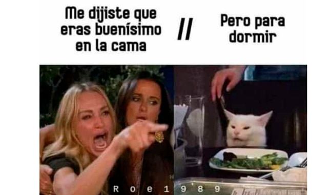 El minino forma parte de los divertidos memes “Me dijiste”, donde su particular expresión de desagrado –cuando le ponen un plato con verduras verdes encima– se mezcla con los alegatos de una mujer que reclama por las mentiras de su minino.