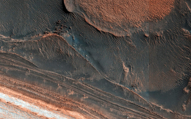 La investigadora de la Universidad de Arizona, Candy Hansen, explicó que “el calor desestabiliza el hielo y los bloques se desprenden (…) las capas debajo son de diferentes colores y texturas dependiendo de la cantidad de polvo mezclado con hielo.