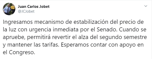 Según el Ministro de Energía, Juan Carlos Jobet, este mecanismo permitirá congelar las tarifas hasta diciembre de 2020. Además, los cambios en las tarifas tendrán que asumirlo las empresas eléctricas, por lo que no habrá un subsidio estatal.