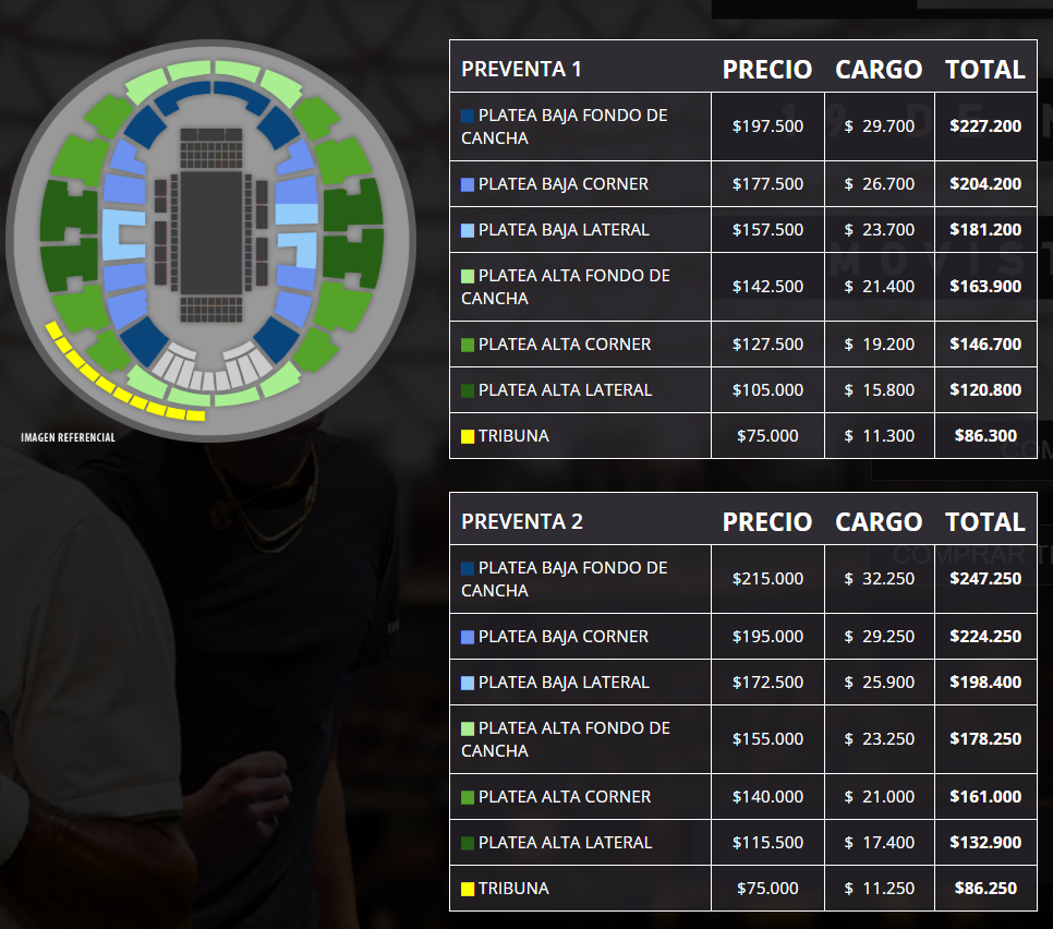 - Sector exclusivo de estacionamientos con ingreso preferencial al recinto previo a la apertura general de puertas.