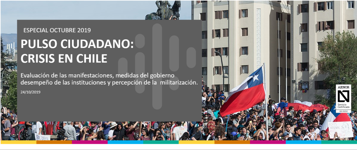 Hoy día se dieron a conocer los resultados de la encuesta Pulso Ciudadano de Activa Research: “Crisis en Chile”. El sondeo fue realizado entre los días martes 22 y miércoles 23 de octubre a través de internet a 2.090 personas. Del total de éstas, un 83,6% reveló estar de acuerdo o muy de acuerdo con las manifestaciones de los últimos días.