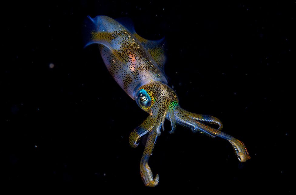 El premio al fotógrafo joven fue para Cruz Erdmann por su imagen nocturna de un calamar de arrecifes en el Estrecho Lembeh en la provincia de Célebes Septentrional, en Indonesia. Cruz participó en la categoría de 11 a 14 años.