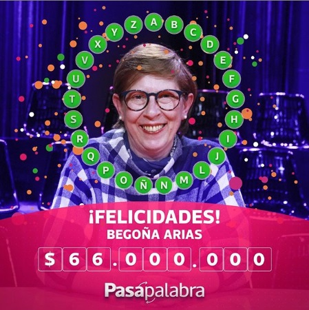 Este jueves en Pasapalabra la veterinaria española Begoña Arias ganó el Rosco súper acumulado de $66 millones, coronándose como la séptima ganadora del programa de Chilevisión.