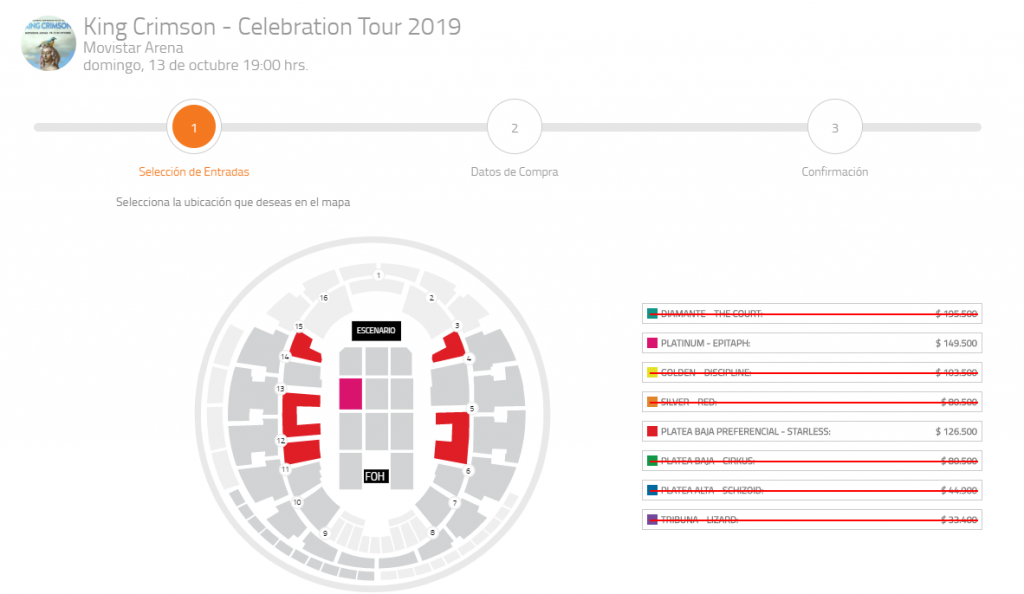 Aquí dejamos las coordenadas para la apertura de puertas a cada uno de los shows de King Crimson. Ojo que boletería abrirá antes para todos aquellos indecisos que llegaron al último día a comprar su ticket. Esto, si es que antes no se agotan. La única boletería oficial es PuntoTicket y se encuentra en el acceso norte de Movistar Arena.