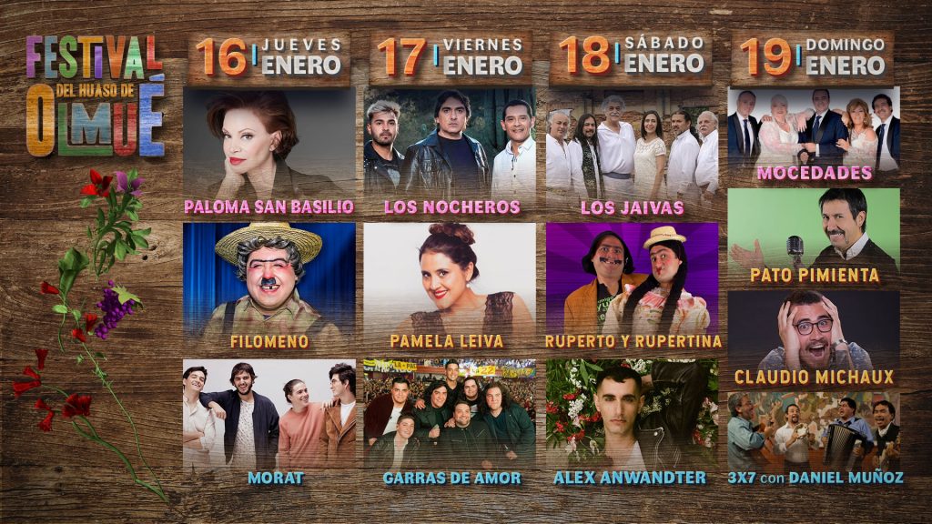 Dentro de los artistas que se presentarán en el festival están: Alex Anwandter, Los Jaivas, Paloma San Basilio, Morat, Garras de Amor y Mocedades. En el humor en tanto, estarán los comediantes: Pato Pimienta, el huaso Filomeno, Ruperto y Rupertina, y Pamela Leiva.