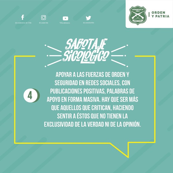 La anterior es solo una de las medidas que Carabineros publicó mediante sus redes sociales, entre las que se incluyen las siguientes: