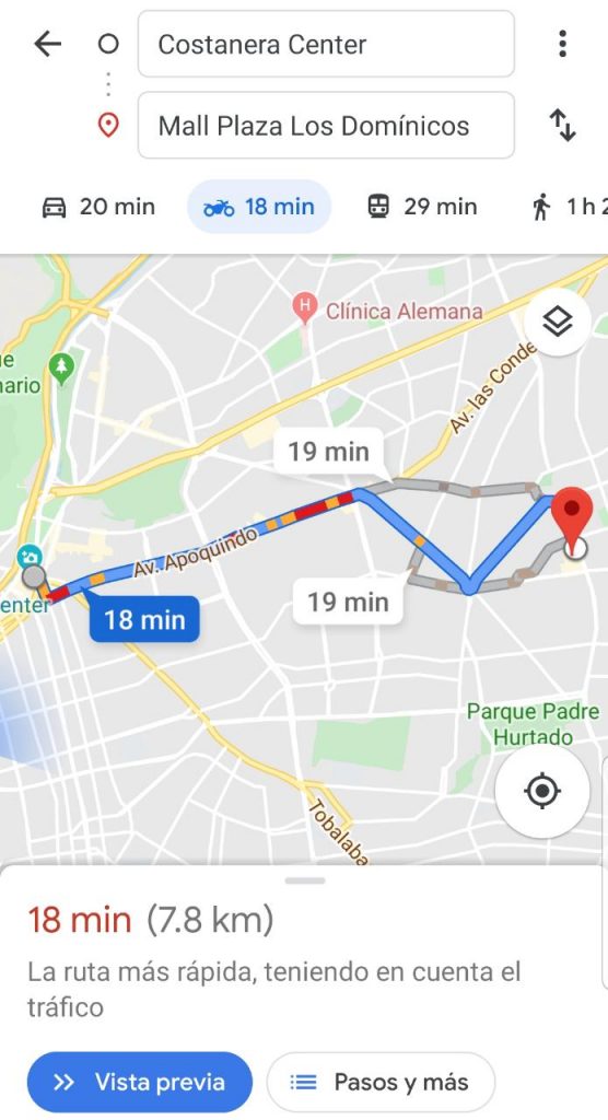 Se trata de un pequeño ícono con el gráfico de una motocicleta. Al elegir esta opción, se verá en el mapa la ruta sugerida por el sistema para quienes utilicen esta forma de transporte.