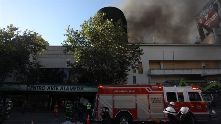 El recinto "se encuentra en su totalidad casi afectado por el fuego", señaló el Comandante del Cuerpo de Bomberos, Diego Velásquez. El mismo bombero explicó que el incendio "surgió en la parte trasera del Banco Estado", a un costado del Cine Arte Alameda.