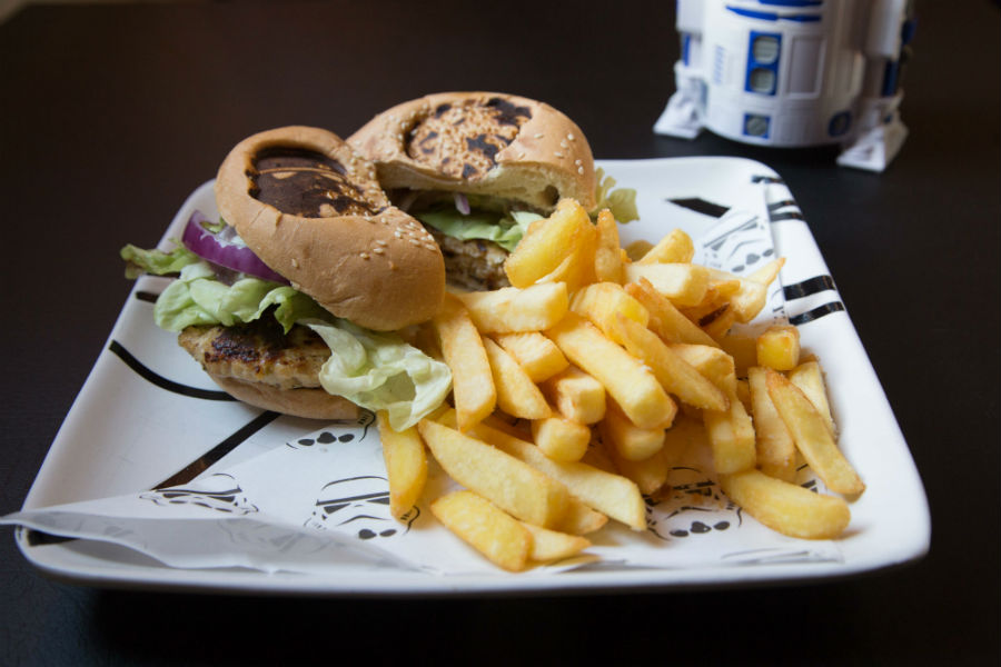 Y si de comida hablamos hay unas hamburguesas con un sello especial de Star Wars.